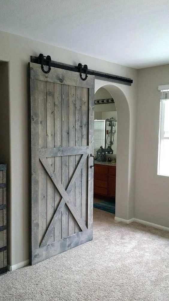 This rustic barn door via google separates the master from the master ensuite.