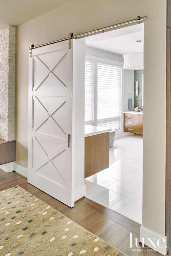 A sleek and modern barn door application looks stunning via Luxesource.