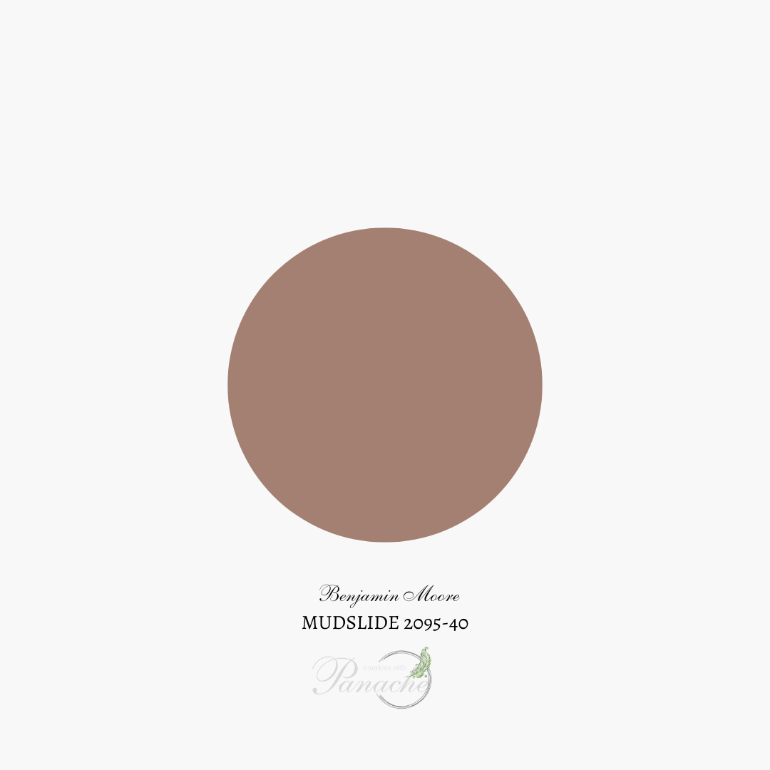Benjamin Moore Mudslide 2095-40 is a neutral, mid-tone hue of an attractive tannish brown with a pink undertone according to their website.