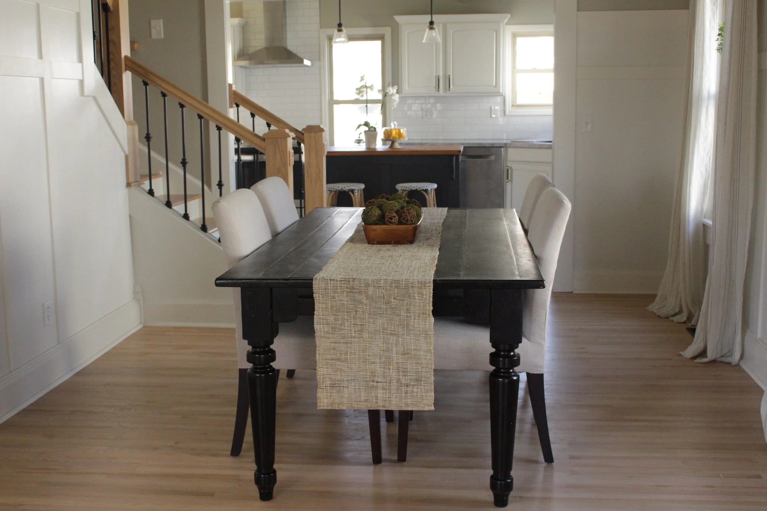 We created a dining room where the family could gather after church for a Sunday dinner. I love to slightly puddle curtains for a casual look to a room. Who wouldn’t want to spend a leisurely dinner with these walls!