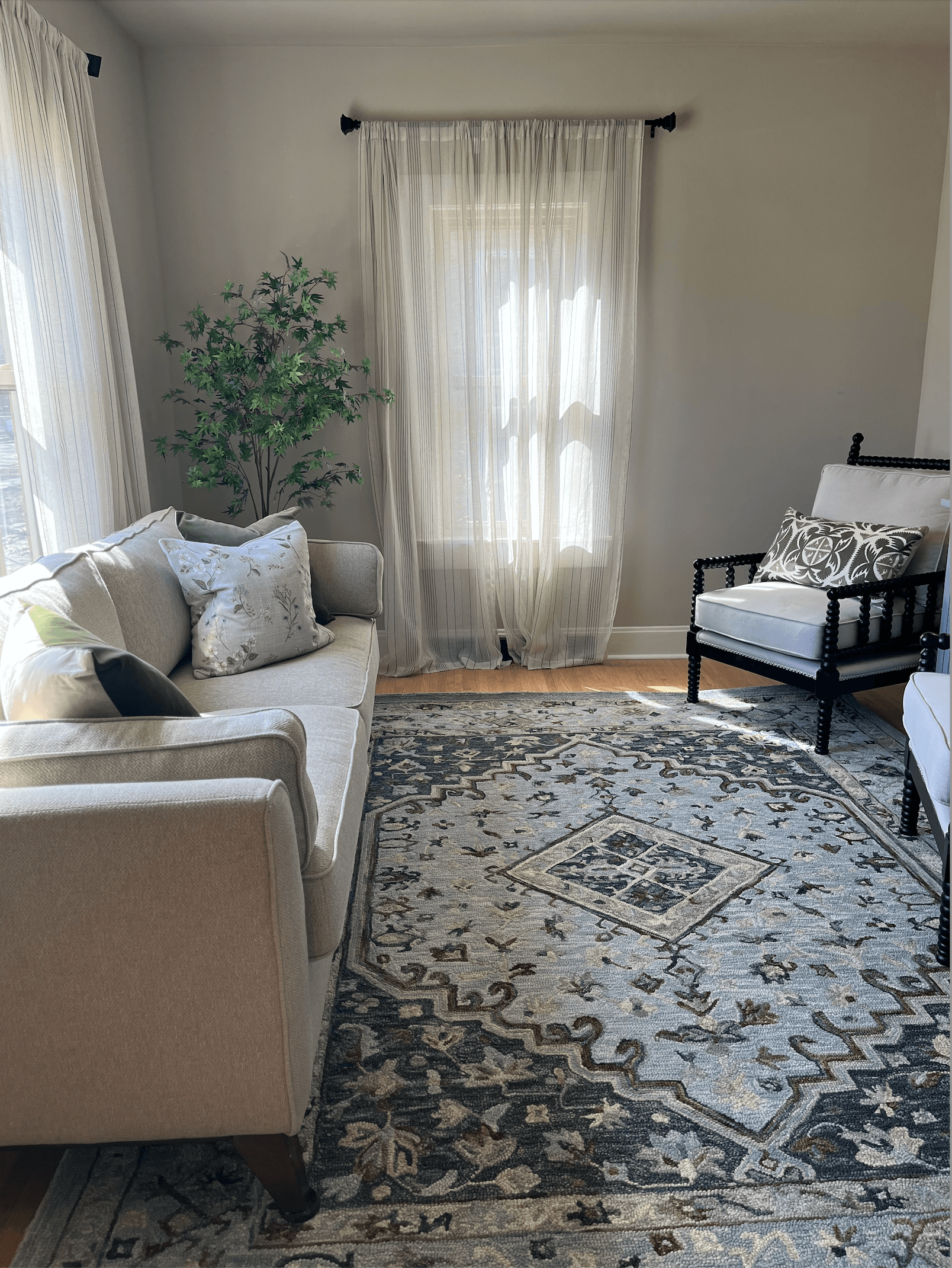 The pillows from Ballard design looked fantastic with the rug.