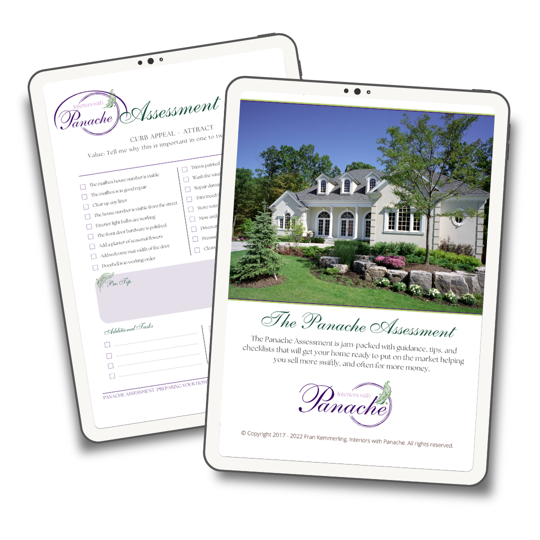Fran is the RE Stager and Interior Decorator behind Interiors with Panache for over 20 years. She has designed and staged homes all around the Chicago area as well as renovating her own homes with her husband of over 30 years. She knows the perils and wants you to have your own panache. In her free time, Fran enjoys reading books, hiking with friends, and spending time in the kitchen cooking new recipes with her family.